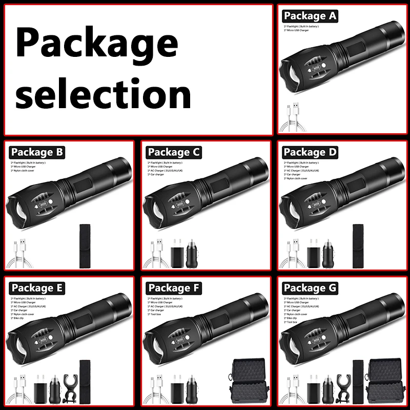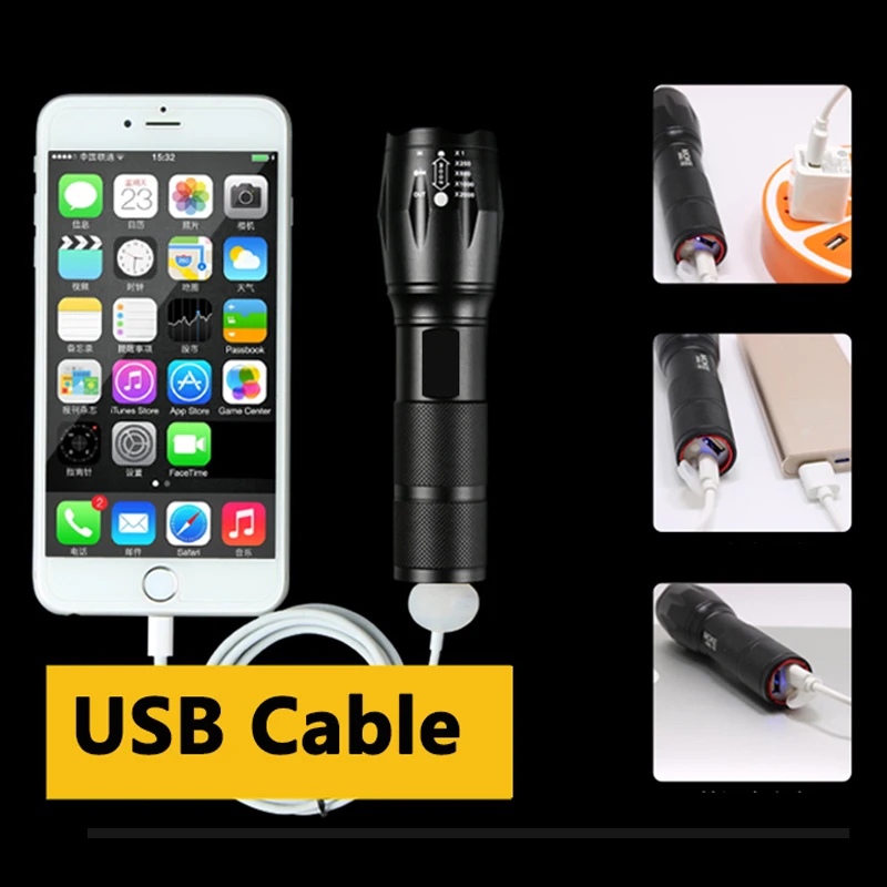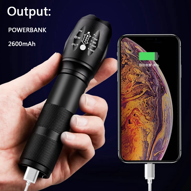 Тактический фонарик с USB-зарядкой, фонафонарь CREE XM-L2 T6, светодиодный фонарик с зумом, внешний аккумулятор usb 18650, перезаряжаемый фонарик