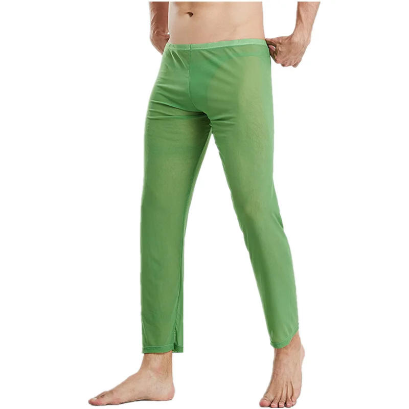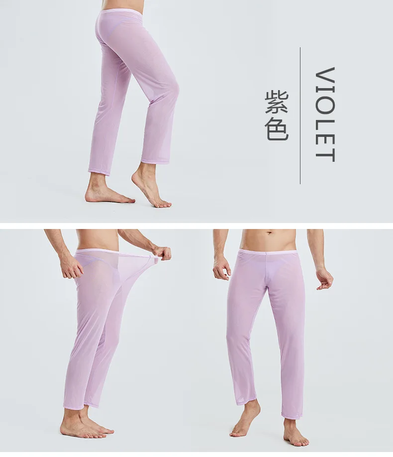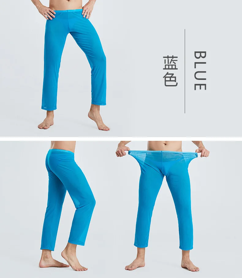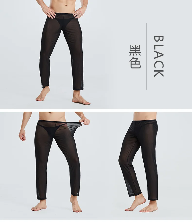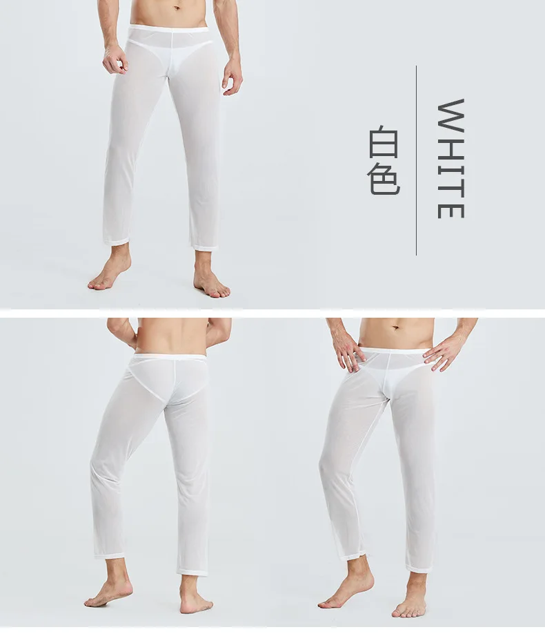 Кальсоны мужские тонкие прозрачные из нейлоновой сетки, пикантное нижнее белье для геев, свободные пижамы, леггинсы, длинные штаны