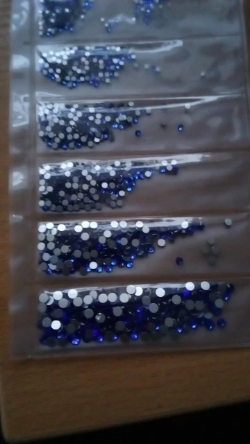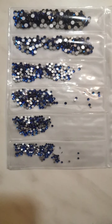 отличные стразы, стекло! Беру у этого поставщика не первый раз. Приходят очень быстро, около 20 дней с момента оформления заказа. Цвет голубой, насыщенный, не бледный, блеск отличный, даже под топом. В носке от основы не отходят, ношу по 3 недели. Мало камней мелкого размера, но большими тоже пользуюсь, очень красиво. Рекомендую продавца и товар!
