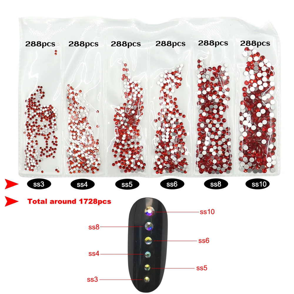 Queency супер блеск 1728 шт. смешивания Размеры SS3-SS10 multi Цвет не исправление Flatback Стразы 3D Стекло Дизайн ногтей Кристаллы сумка Декор