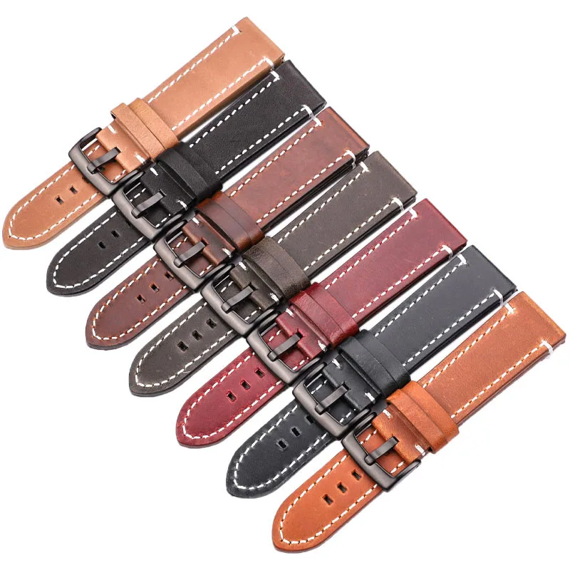 Ремешок из воловьей кожи для наручных часов, сменный винтажный браслет из натуральной кожи с матовой пряжкой из нержавеющей стали, 18 20 22 24 мм