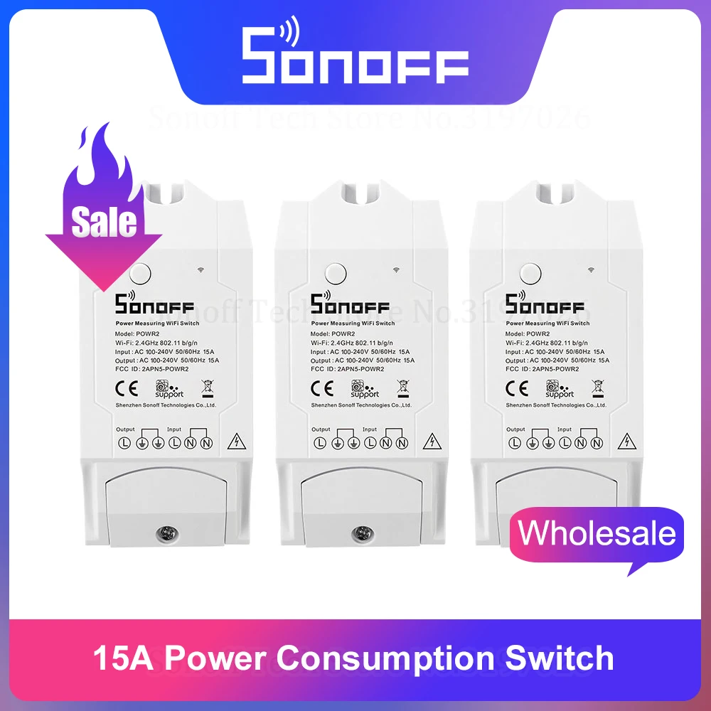 Умный коммутатор Itead Sonoff POW R2, 15 А, Wi-Fi, управление энергией, умный дом, Wi-Fi коммутатор через приложение eWeLink, работает с Alexa IFTTT
