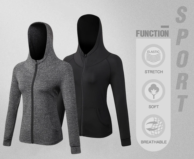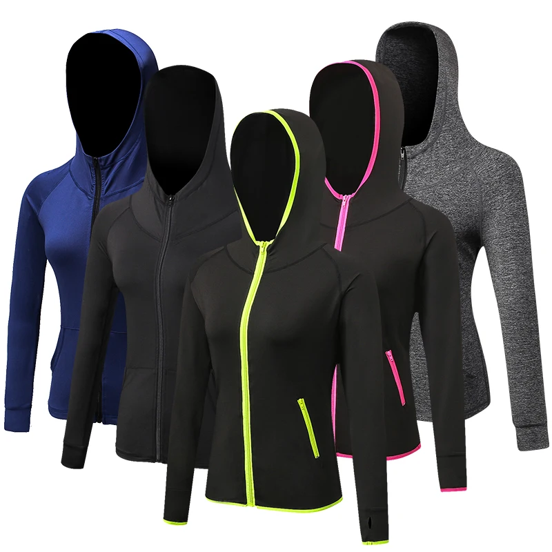 Осенне-зимняя женская куртка YD для фитнеса, тренировок в тренажерном зале, спорта, бега, с молнией и шляпой, Повседневная футболка, топ для фитнеса