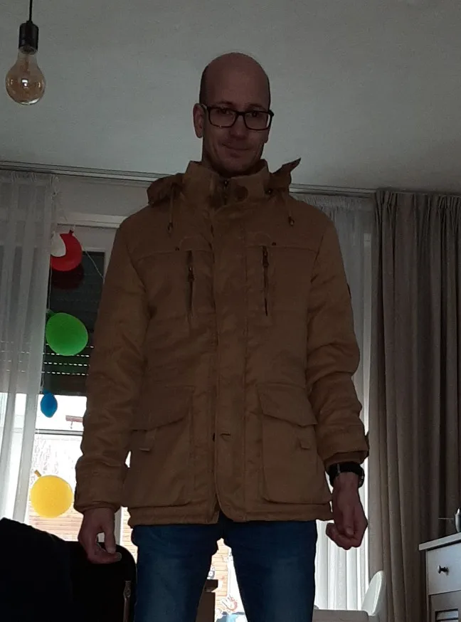 Я заказал куртку размера 4XL. Я измерил 1,75 м и весит 85 кг. Идеальный размер для меня, я могу даже носить маленький свитер под курткой. С другой стороны, если вы хотите выйти на-40 градусов, купите что-то еще, эта куртка будет очень хорошо подходить только для осени или весны. Цвет немного четче, чем на фотографии, размещенной на странице магазина, но мне нравится. Швы, кажется, изготовлены из хорошего качества. С другой стороны невозможно закрыть капюшон, потому что защелки одинаковые (женский тип) с каждой стороны... (фотографии 4 и 5). Быстрая доставка, 13 дней ожидания меня (заказанный на 10/06 и полученный на 10/19). Спасибо продавцу за его отзывчивость;) и за отправку посылки из размещенного заказа. Для евро 34,94 с бесплатной доставкой в дополнение к этому, я действительно благодарю продавца за то, что он практиковал подходящую цену.