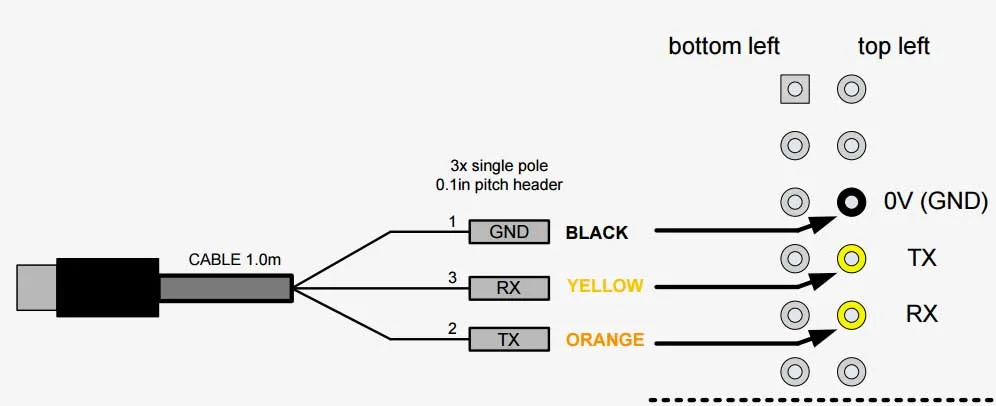 Отладочный кабель устанавливается на Rx/Tx процессора RPi ARM UART, что обеспечивает гораздо более подробную информацию