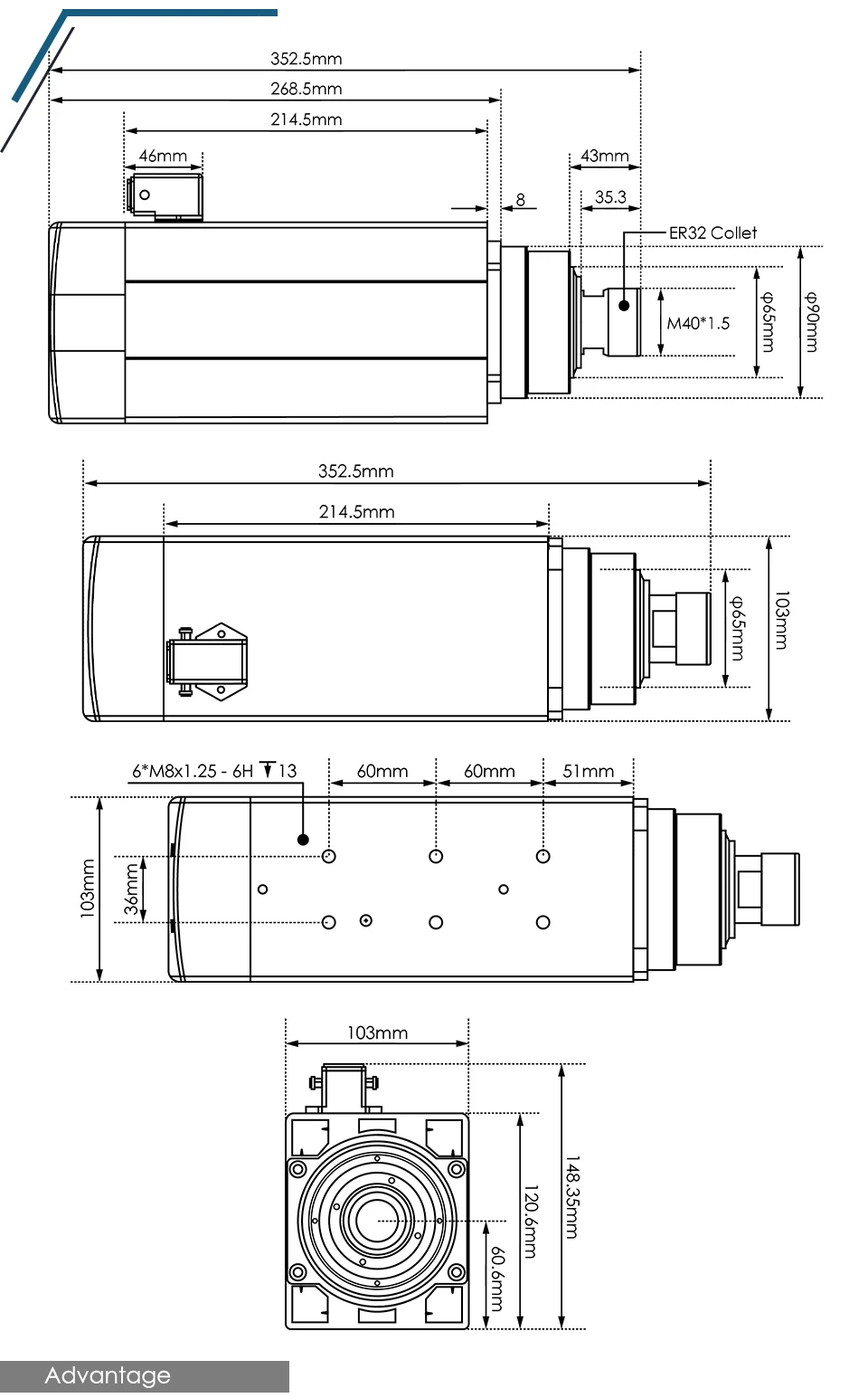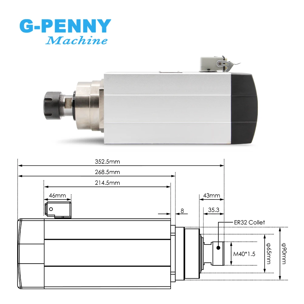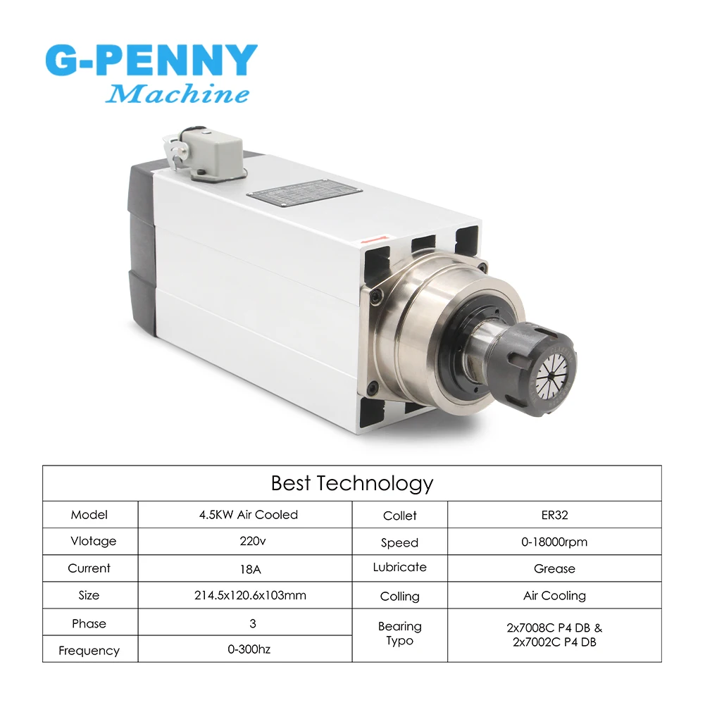 4,5 кВтER32Шпиндель с воздушным охлаждением, Цанговая гайка в диапазоне от 1 мм до 16 мм, лучше, чем ER25 цанга.