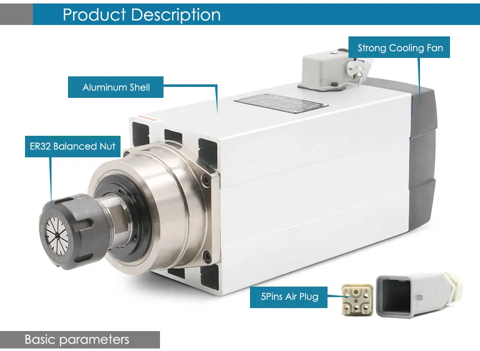 2. Шум: двигатель шпинделя с водяным охлаждением в основном не шумит, но двигатель шпинделя с воздушным охлаждением очень громкий.