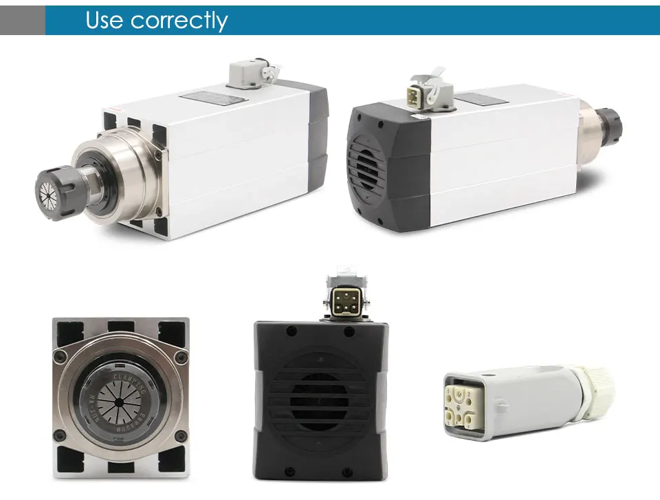 Перед использованием шпинделя с водяным охлаждением система охлаждения работает должным образом. Каждый день перед использованием шпинделя должен работать на низкой скорости в течение 15-20 минут. Прижимная фрезы к шпинделю, коллетным газам, коллетам, резакам должна быть достаточно чистой. Хвостовик, вставленный в Коллет, должен быть больше 15 мм.