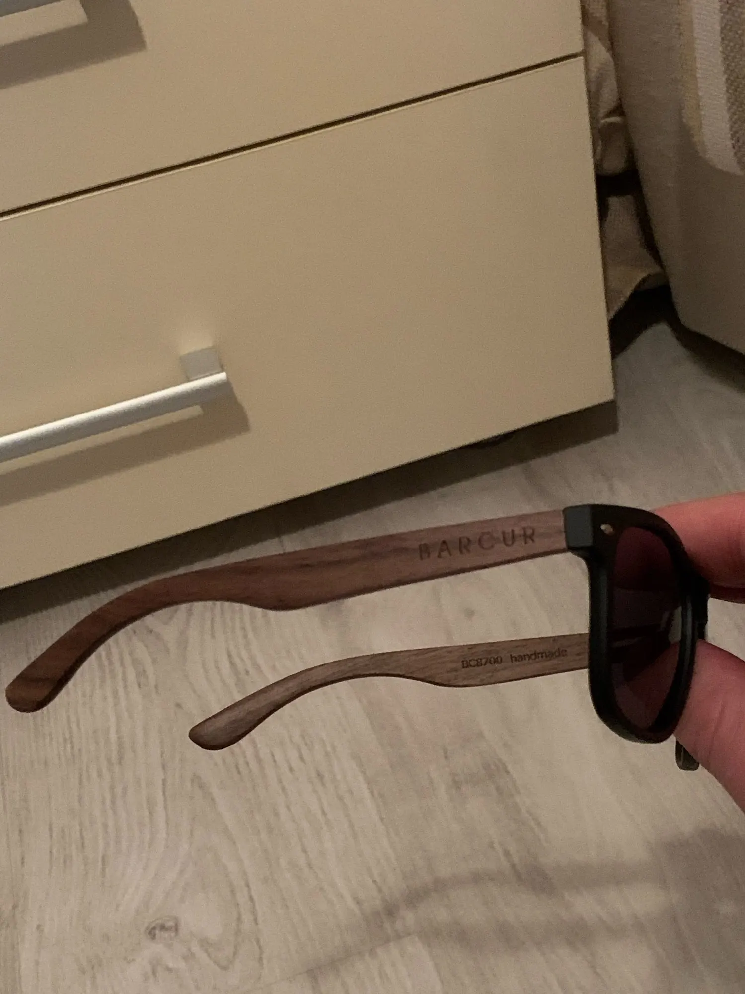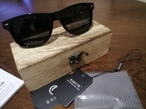 Ручка из грецкого ореха и качество пластика красивые и яркие, полностью сидит на лице и поляризационная защита супер. Очки, которые сделают вас комфортными в повседневном и спортивном стиле. Мне очень нравится. Я хотел его в деревянном шкафу, все из ткани стеклоочистителя достигли моей руки, продукт, который никогда не пожалеет.