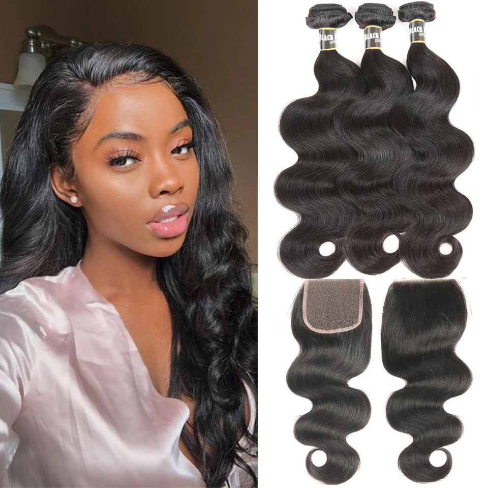 Пучки волнистых волос с черным жемчугом, 8-36 дюймов, 3 пряди ди человеческих волос Remy с закрытием, бразильские пучки волос для плетения