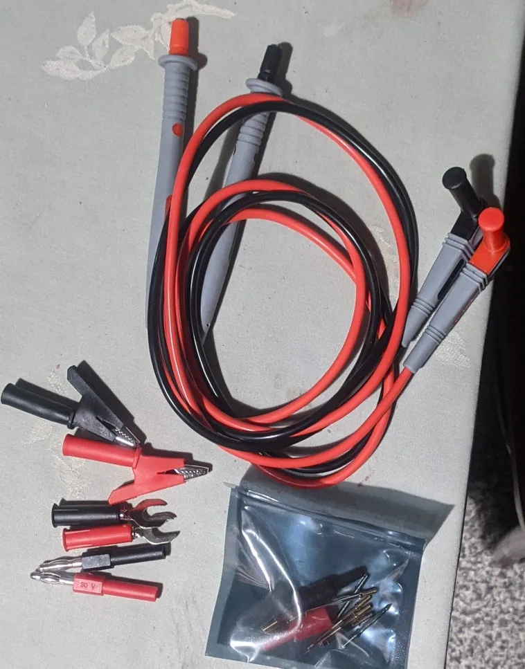 Щупы замечательные, сопротивление одного 0,1Ом. В комплекте острые наконечники, зажимы крокодил. Всё в сборе громоздко, но для разных целей с ними удобней производить измерения. Рекомендую, удачных покупок. Продавец общительный, отправляет товары быстро.