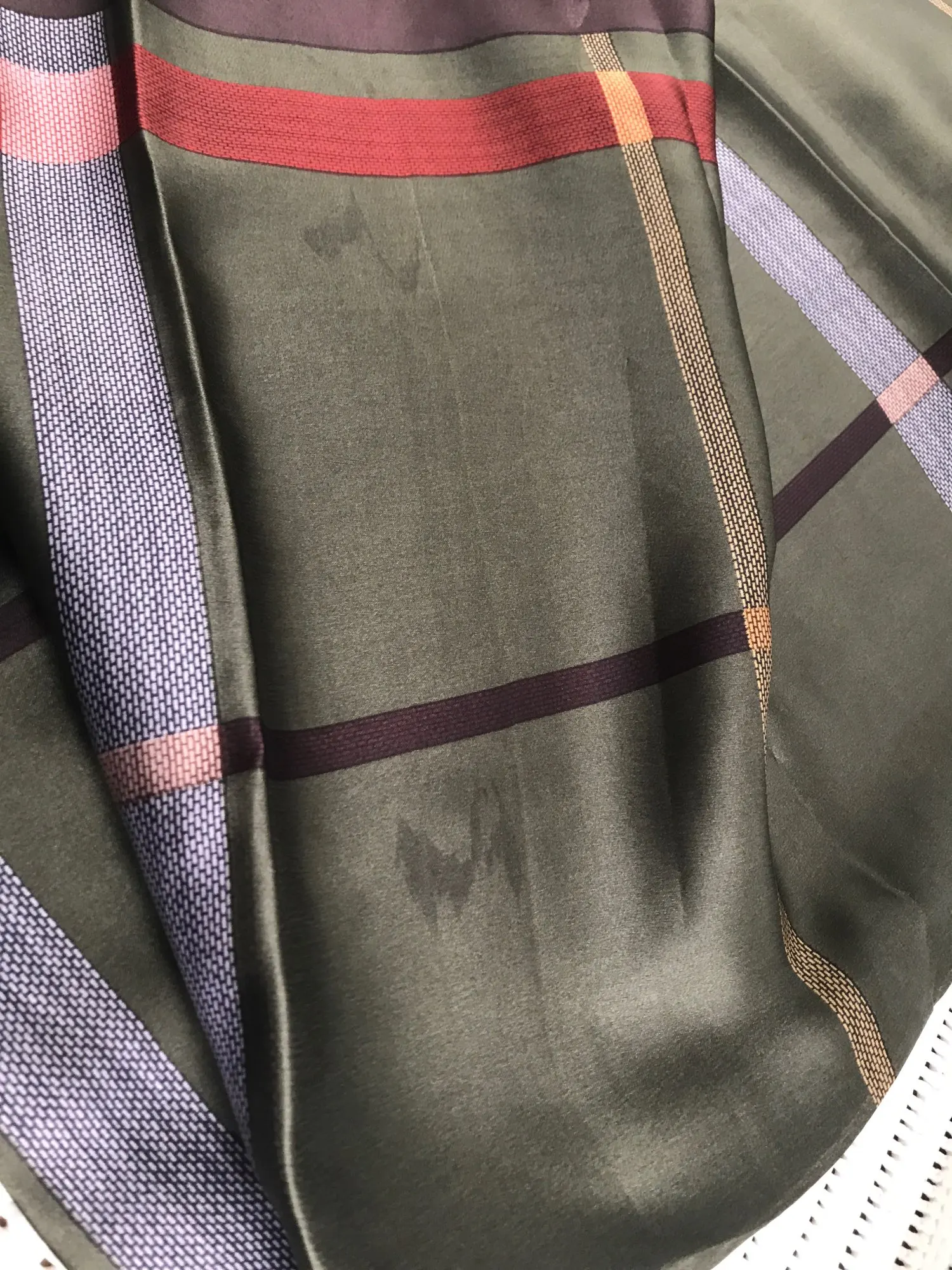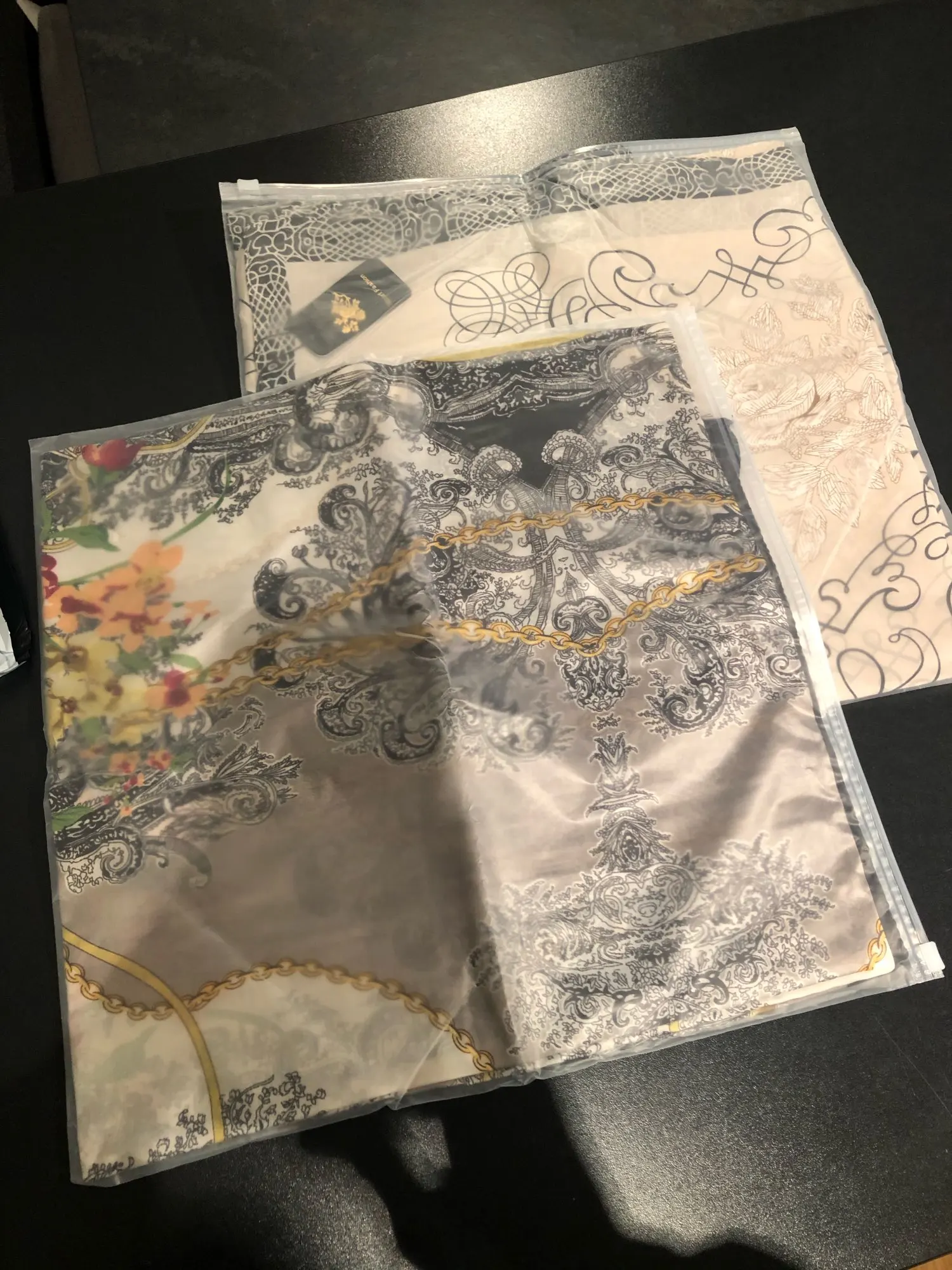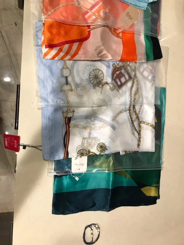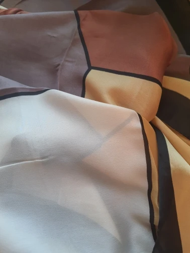 Получила шарфик в срок . Очень довольно ,большой , не сильно просвечивается ,без запаха. Нитки не торчат ,очень насыщенные цвета . На бирке написано 100% шёлк . Продавца советую .