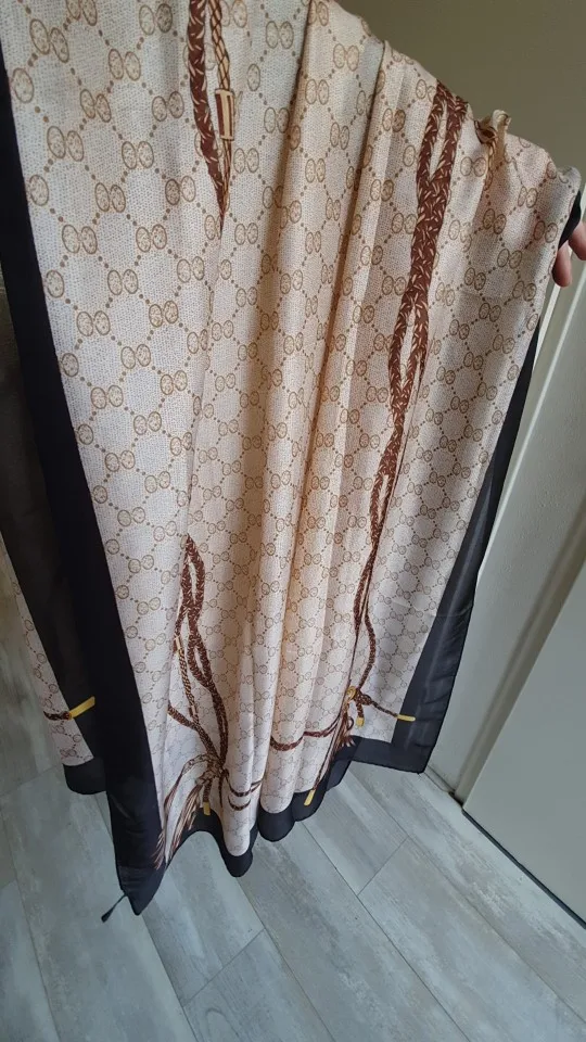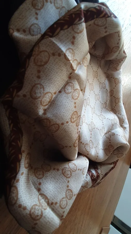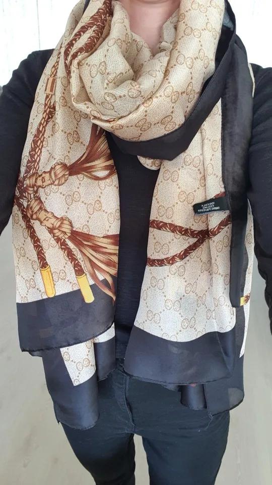 Хороший шарф, длинный, широкий. Естественно, это не оригинал бренда, поэтому ожидать чего-то сверхъестественного не стоит. За свою цену очень красивая вещь! На этикетке написано, что шёлк... но если честно либо это полиэстер, либо смесь с полиэстром, так как после стирки наэлектризовалась ткань.