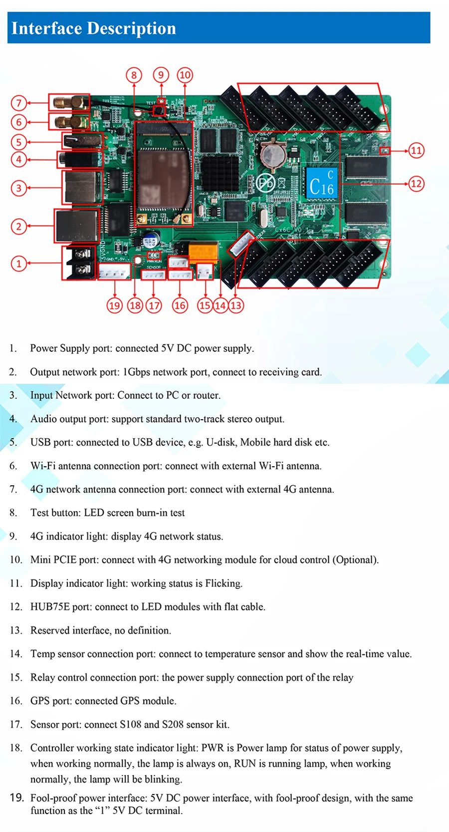 HD-C15C HD-C16C асинхронный (подключение принимающей карты Поддерживается) полноцветная видеокарта управления светодиодным дисплеем