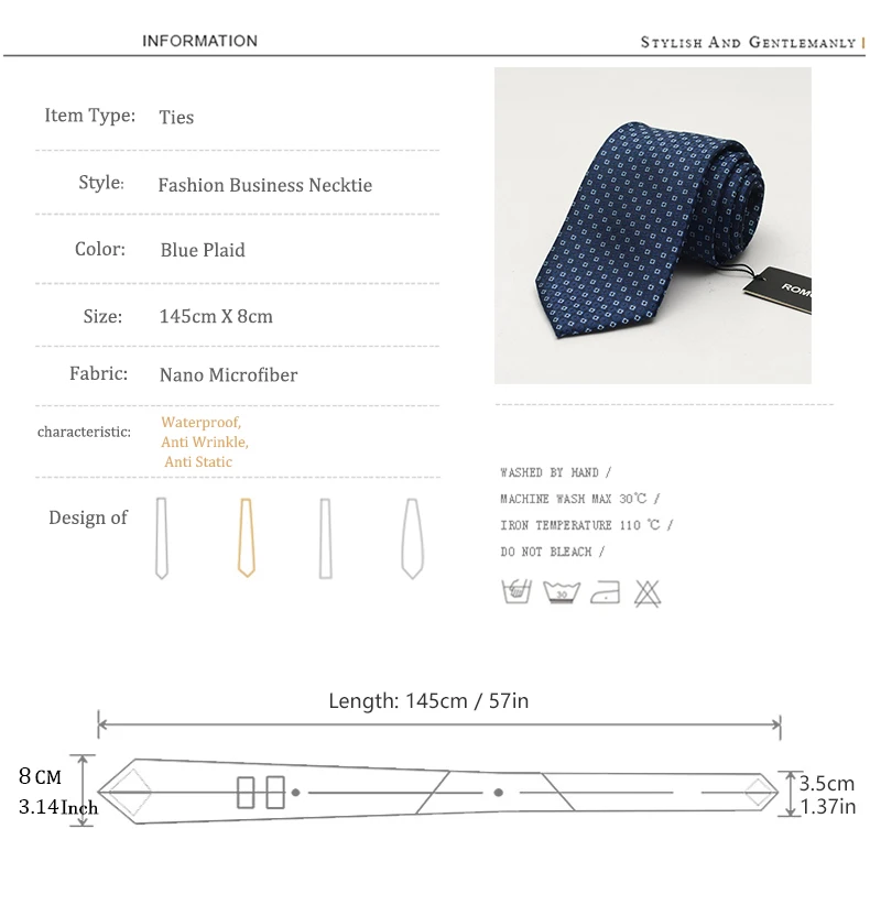 Ties Size57''(145cm) in length and 3.14''(8cm) in Width