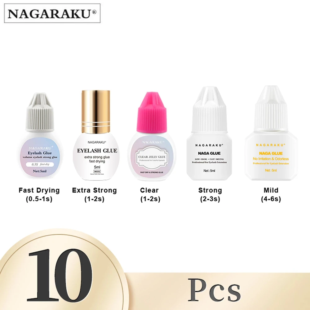 NAGARAKU, 5 мл, 10 шт., бутылочки с низким запахом, без моделирования, наращивание ресниц, клей, мягкий клей для ресниц, клей для накладных ресниц