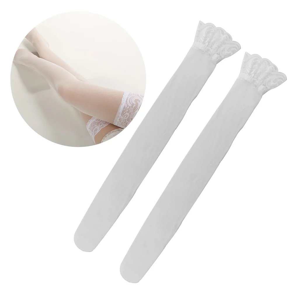 Модные женские кружевные чулки с цветочным верхом, пикантные высокие чулки до бедра с Пояс для чулок, Женская Экзотическая одежда, Чулочные изделия