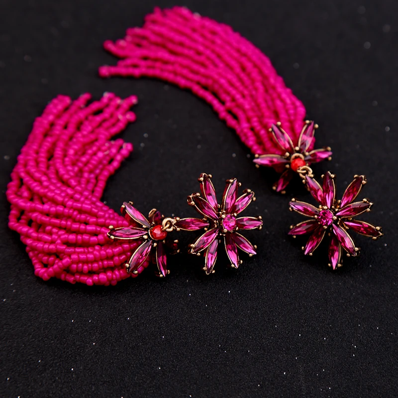 Женские длинные серьги-подвески KISS ME, модные розово-красные акриловые серьги с бусинами и цветами, бижутерия для женщин