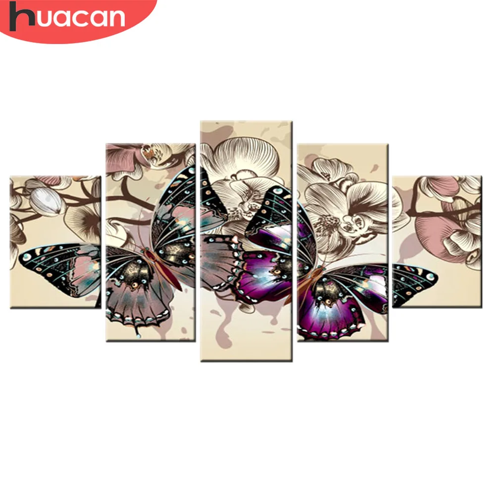 Huacan Бриллиантовая мозаичная бабочка комбинированная квадратная вышивка крестиком художественный подарок 5 шт.компл.