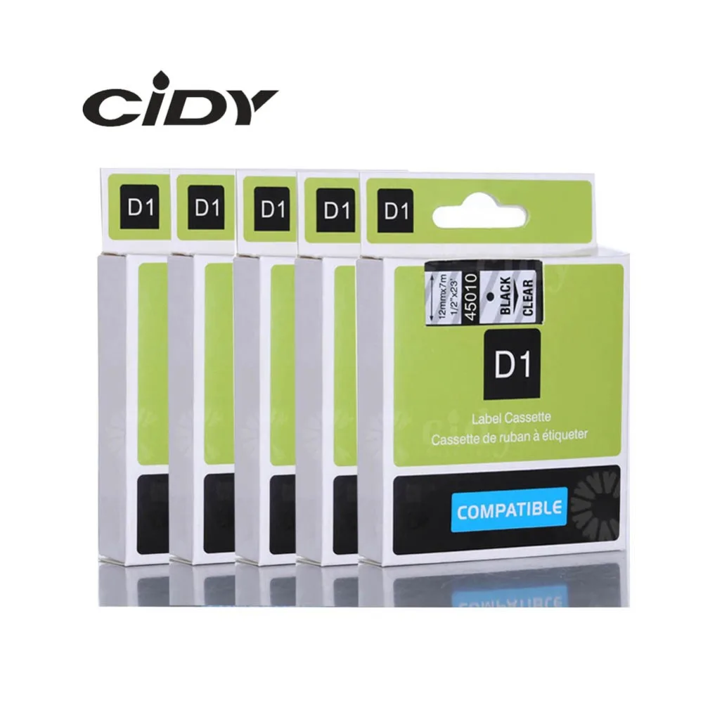 Cidy 5 шт. совместимый с Dymo Labelmanager 12 мм D1 черный на прозрачном 45010 ленточном картридже для DYMO LM160 LM280 PNP