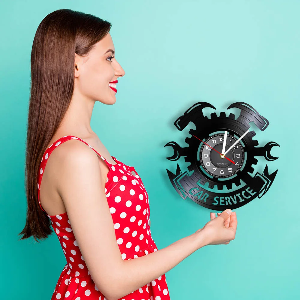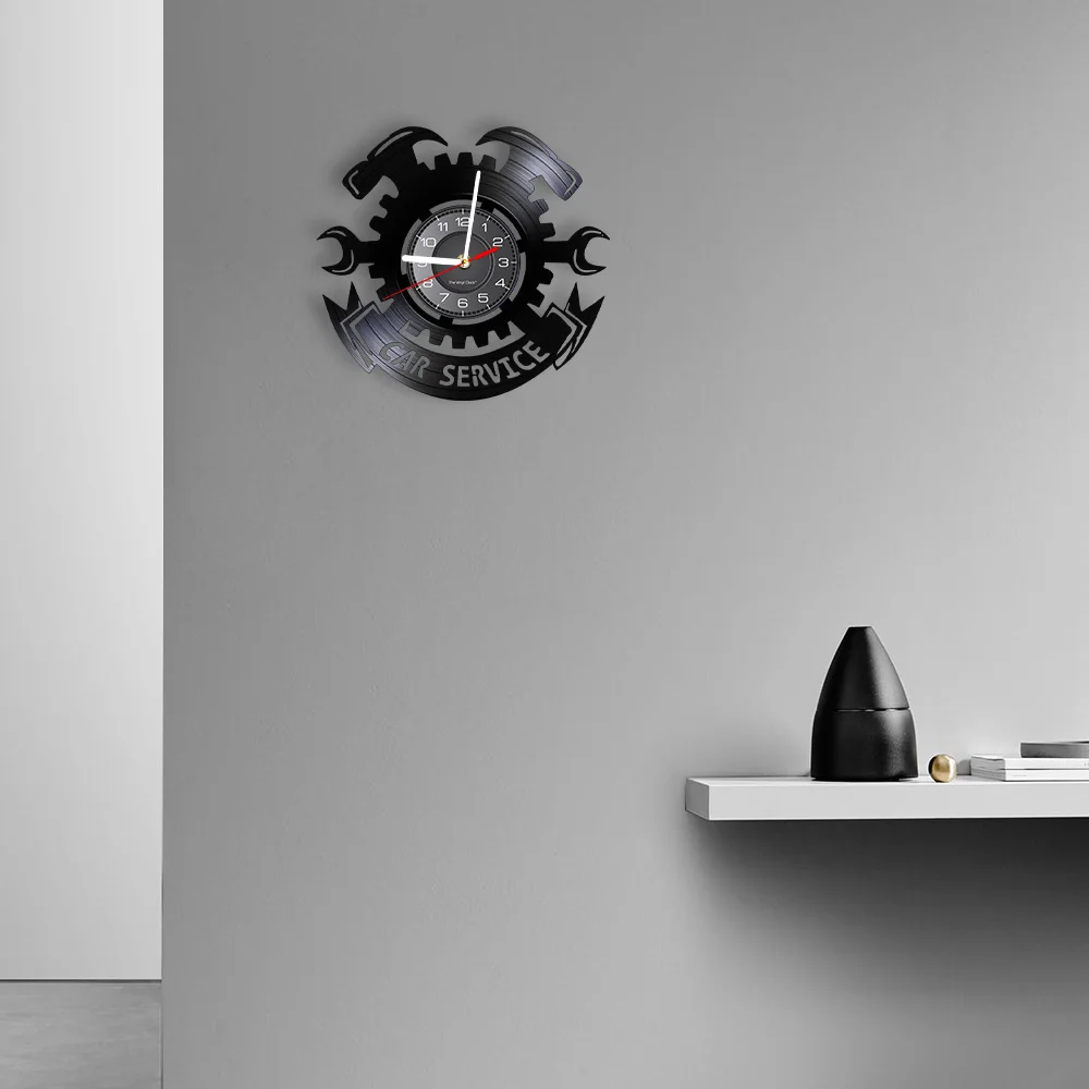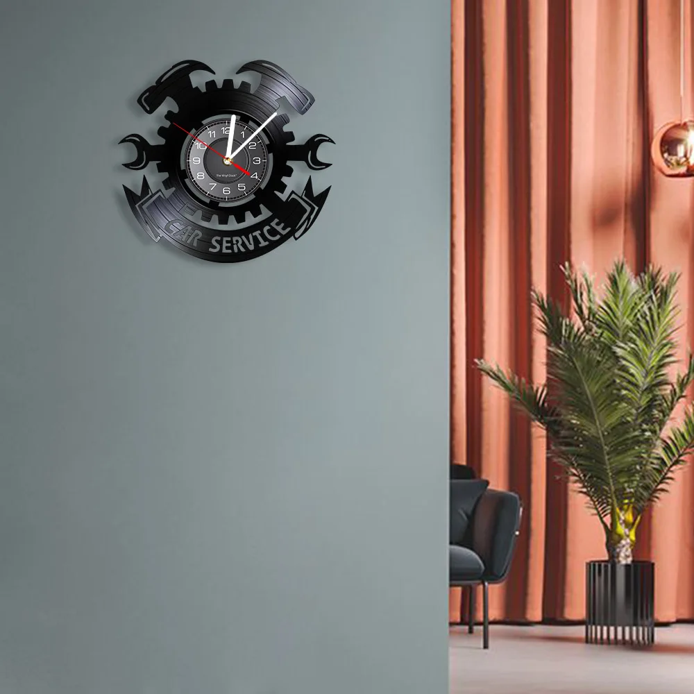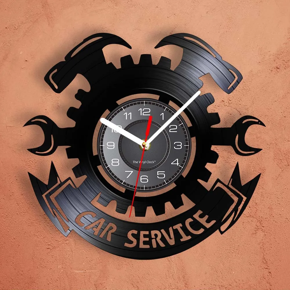 Виниловые настенные часы для ремонта автомобиля, гаечный ключ для гаража, механический виниловый диск, винтажные настенные часы с подвесным механизмом для рукоделия
