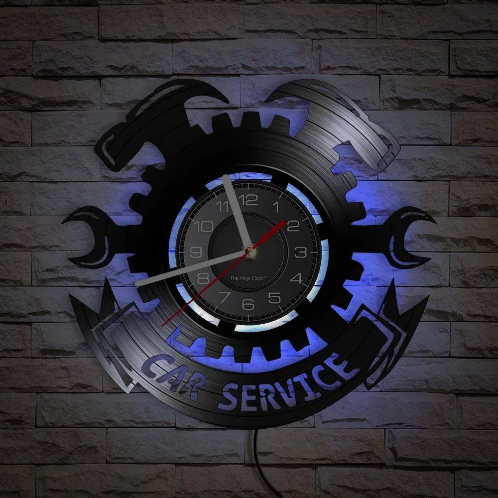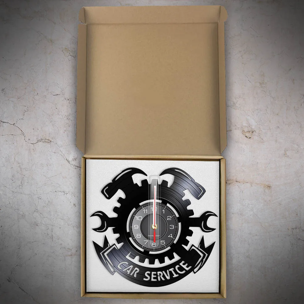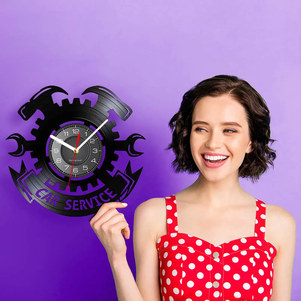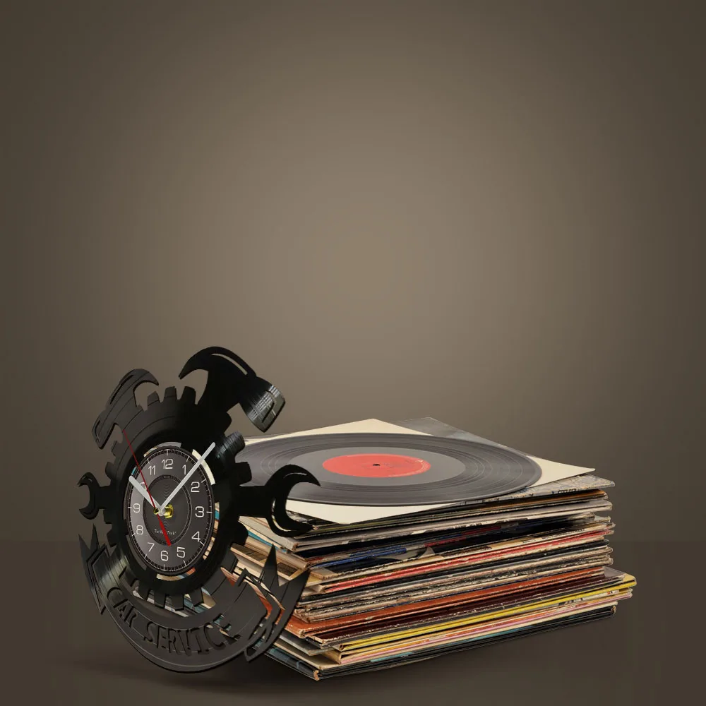Виниловые настенные часы для ремонта автомобиля, гаечный ключ для гаража, механический виниловый диск, винтажные настенные часы с подвесным механизмом для рукоделия
