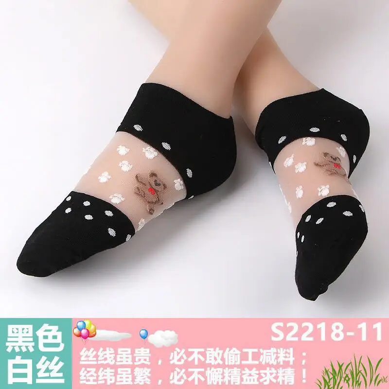 Сетчатые шелковистые ультратонкие невидимые прозрачные хлопковые короткие носки из стекловолокна Мультяшные женские Чулочные изделия 1 пара = 2 шт. 220