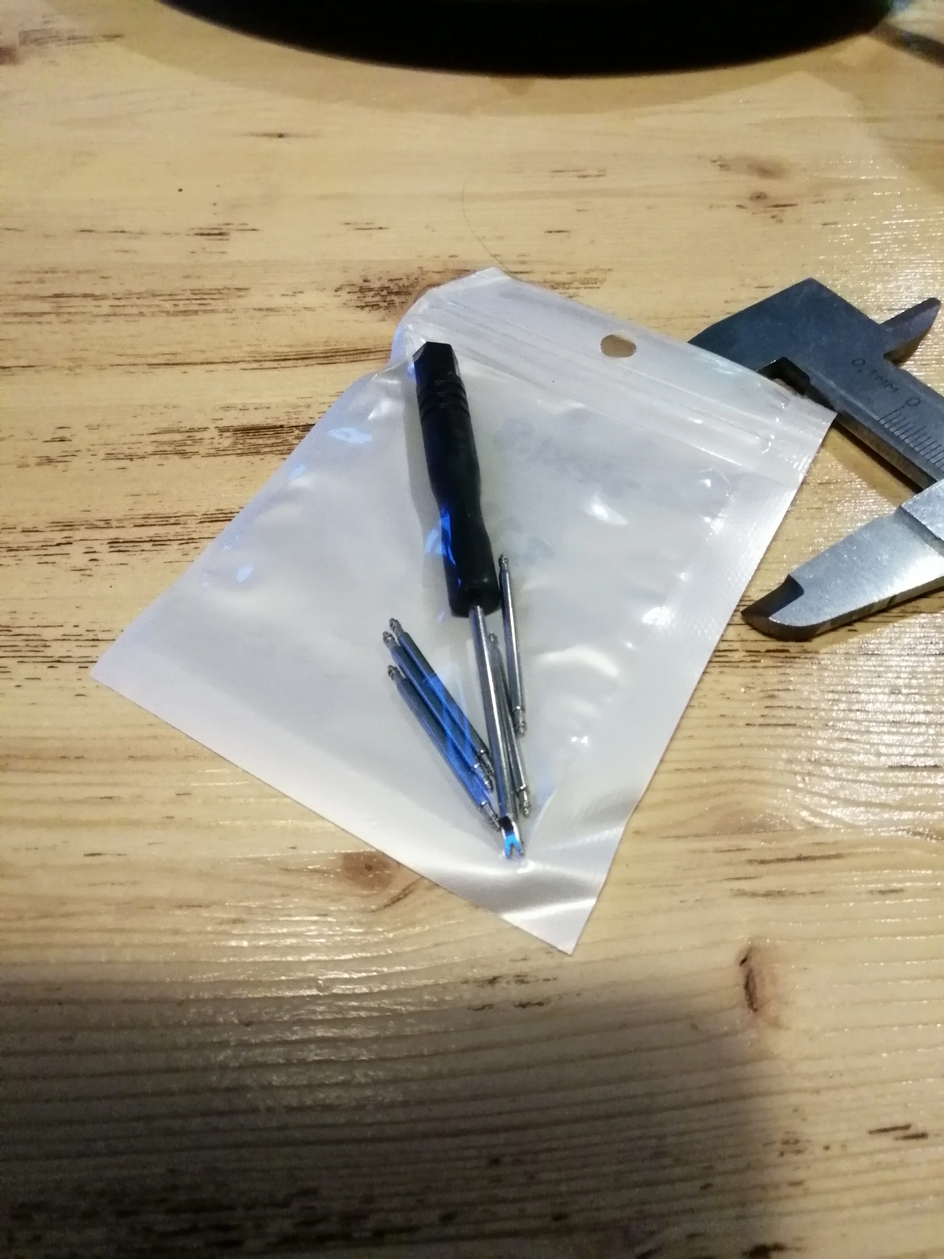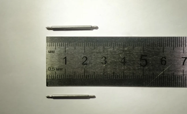 Сумничал, взял на 2мм. больше ширины посадочного места. Длина штифтов указана без учёта подпружиненных элементов. Не повторяйте моей ошибки, выбирайте длину штифта соответствующей ширине посадочного места под ремешок\браслет! Инструмент в комплекте крепкий, прилагал большое усилие и не согнул. Рекомендую