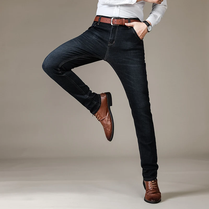 Мужские брендовые черные джинсы Brother Wang, классические эластичные узкие брюки в деловом стиле