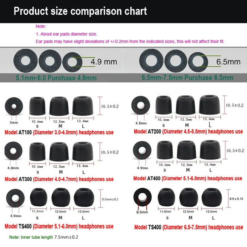 Набор амбушюров ANJIRUI TS-400, насадки из пены с эффектом памяти, 4,9 мм, 20 шт.