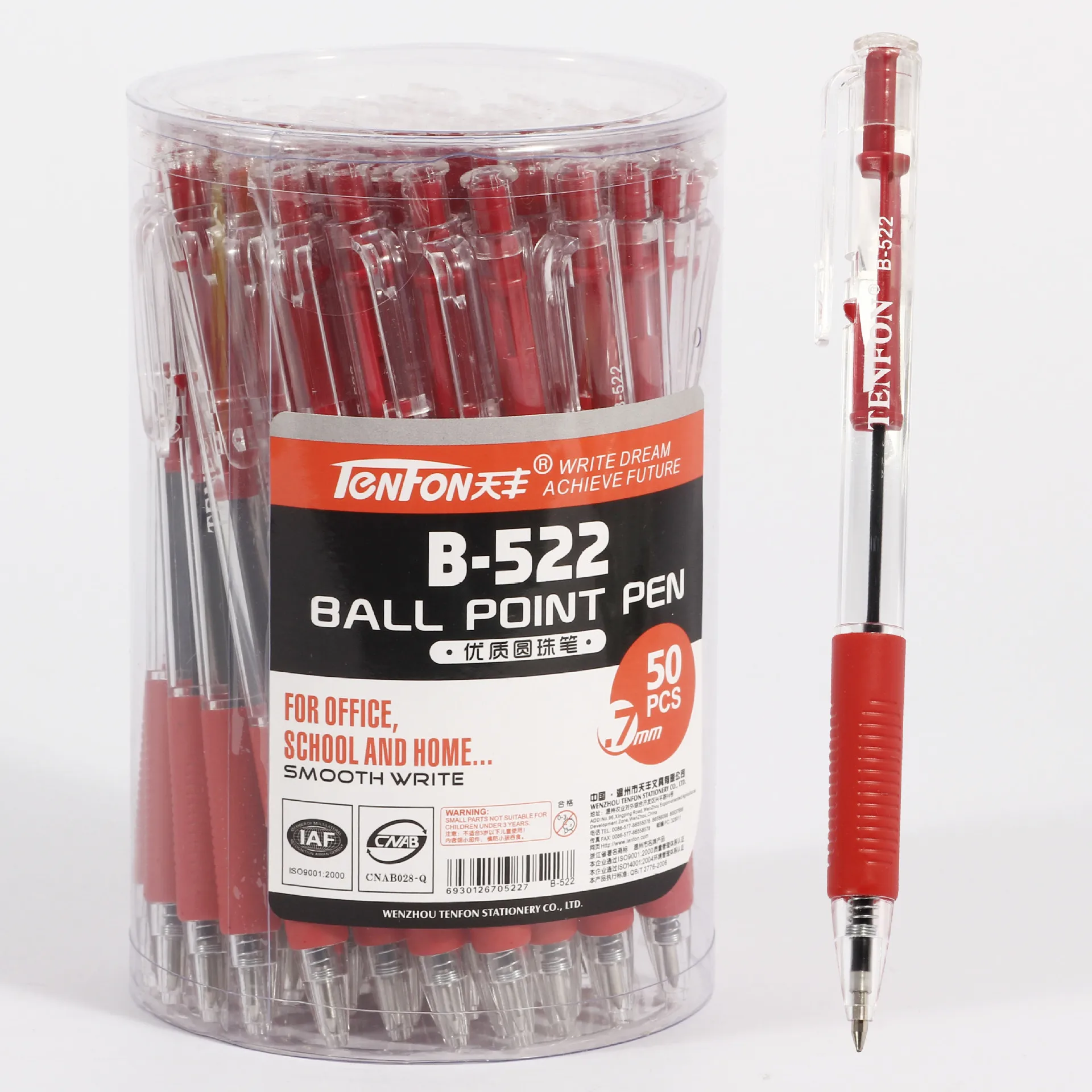 50 шт.кор. 0,7 мм черные красные синие чернила оптом пластиковая шариковая ручка пишущие инструменты школьные канцелярские принадлежности