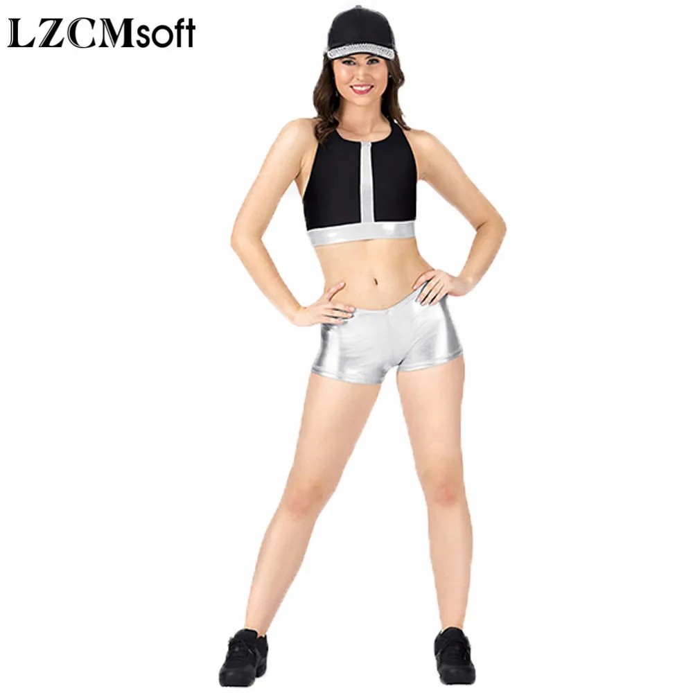 Женские блестящие металлические шорты для танцев с низкой талией для взрослых небесно-голубые гимнастические шорты для девочек Золотое нижнее белье для тренировок командные штаны