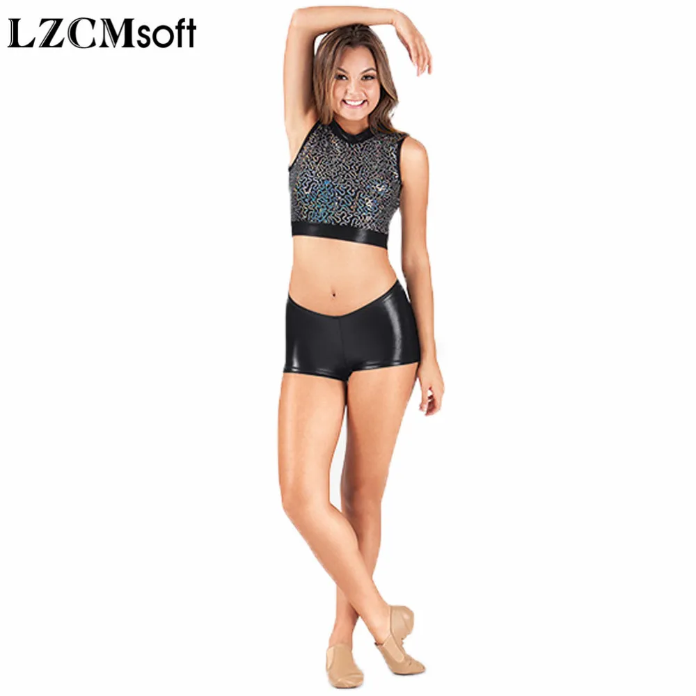 Блестящие шорты с металлическим отливом-это универсальный предмет для развеселения или танцев. Носится отдельно, это дает вам гибкость, которая вам нужна; Сопряжение с танцевальным топом для класса или выступлений и команд.