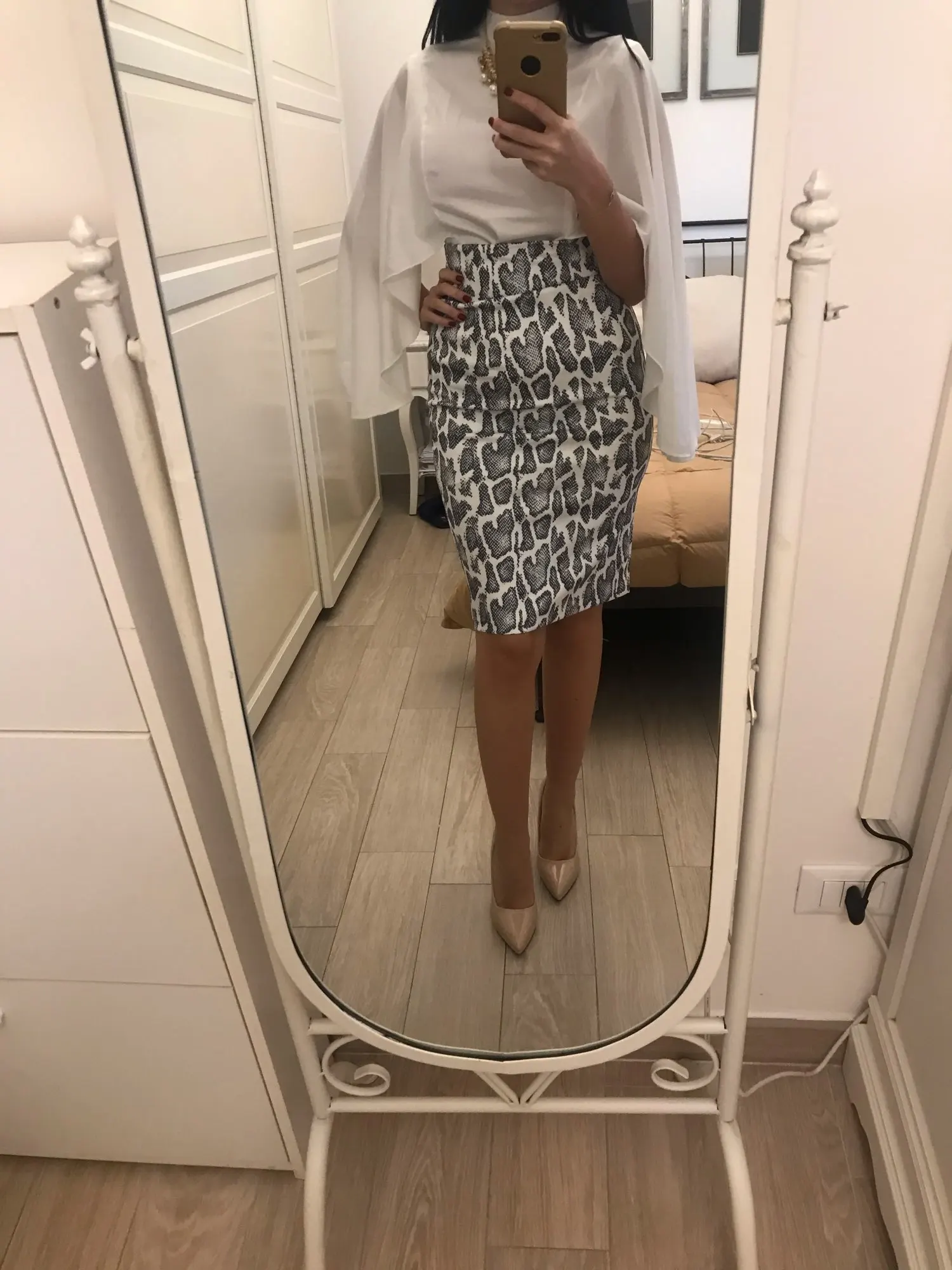 Женский комплект из 2 предметов, белая шифоновая рубашка и посылка гающая юбка, модель S7N203A, плащ пончо шаль