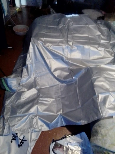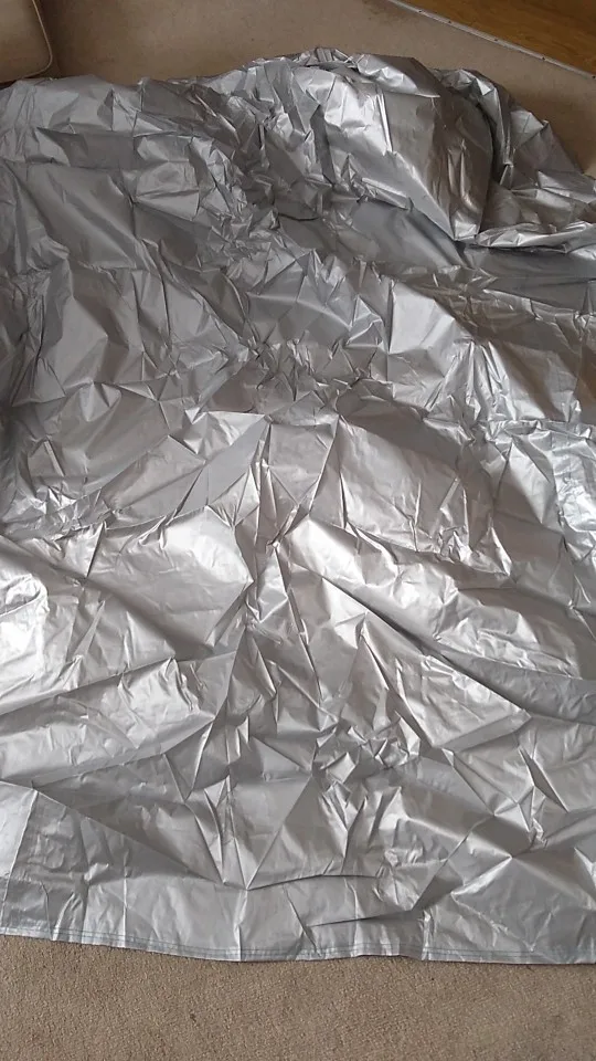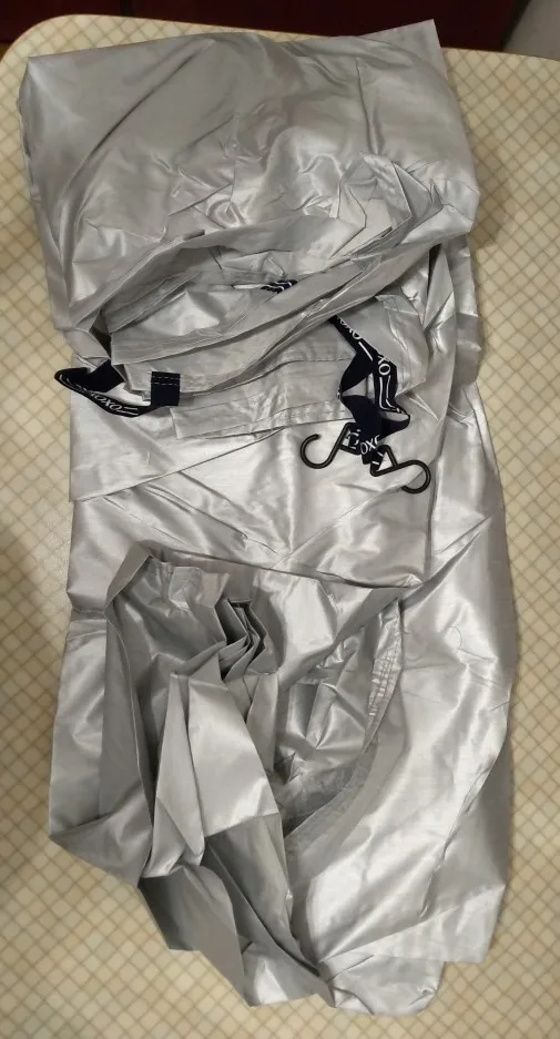 получил быстро, через 15 дней. Материал серебристый типа болоньки, будет хорошо отражать солнце, и снег легко сбросить. Материал- тонкий хорошо складывается и имеет малый пакет, удобно. Как в процессе употребления будет позднее добавлю.