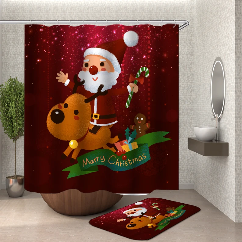 Рождественская занавеска для душа с крючками, занавески для ванной ...