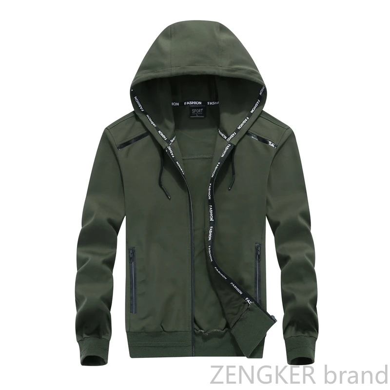 Модная мужская куртка с капюшоном на молнии с длинным рукавом, крут...