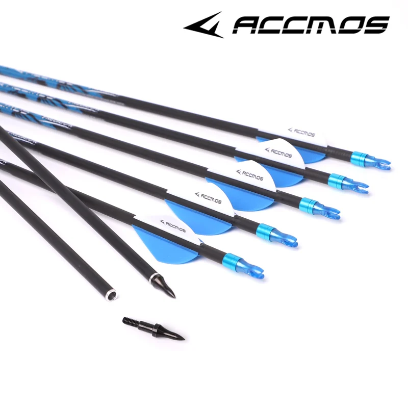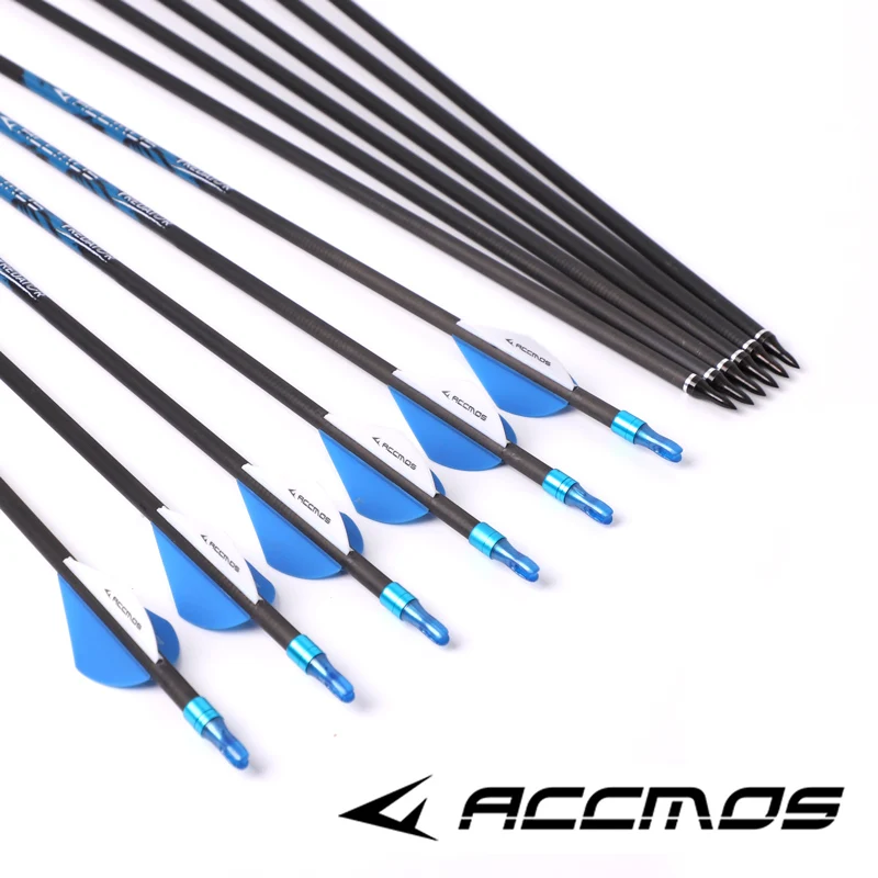 Стрелы из чистого карбона для стрельбы из лука, 12 шт., 32 дюйма, 250, 300, 340, 400, 500, 600, 700, 800, ID, 6,2 мм, стрельба из лука для охоты