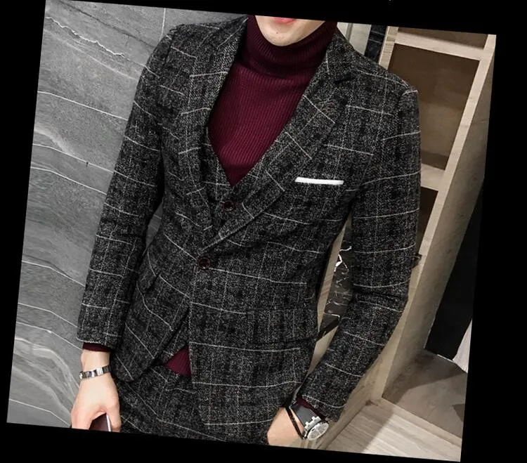 Мужской костюм из 3 предметов в британском стиле, новейший дизайн пальто и брюк, свадебные костюмы для мужчин, Осенние плотные облегающие костюмы для жениха, смокинг 5XL-M, 2020