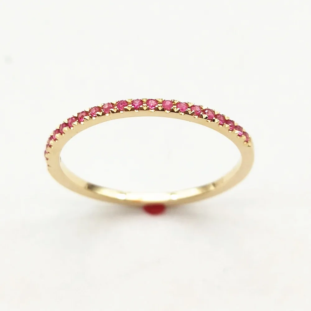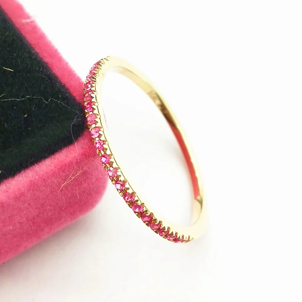Stackable Pave блестящее подлинное кольцо с розовым сапфиром твердое 10K желтое золото розовый сапфир драгоценный камень юбилей обручальное кольцо