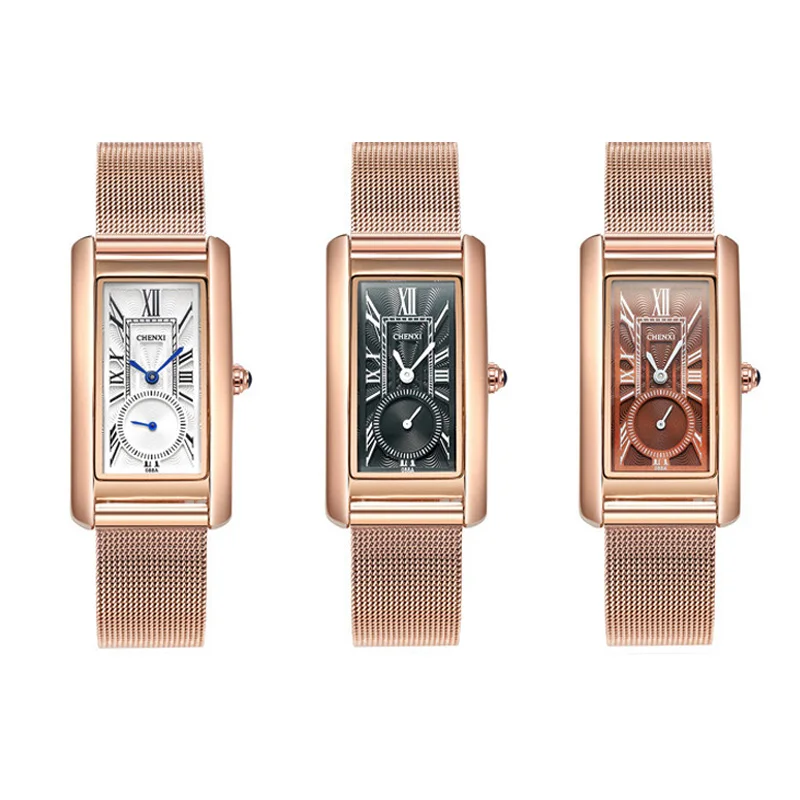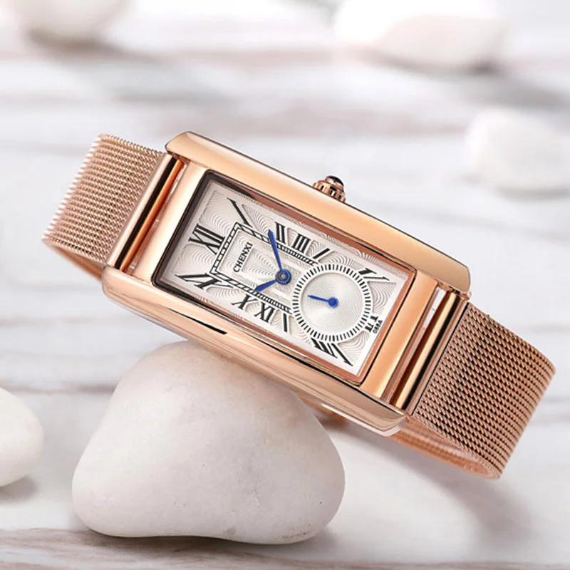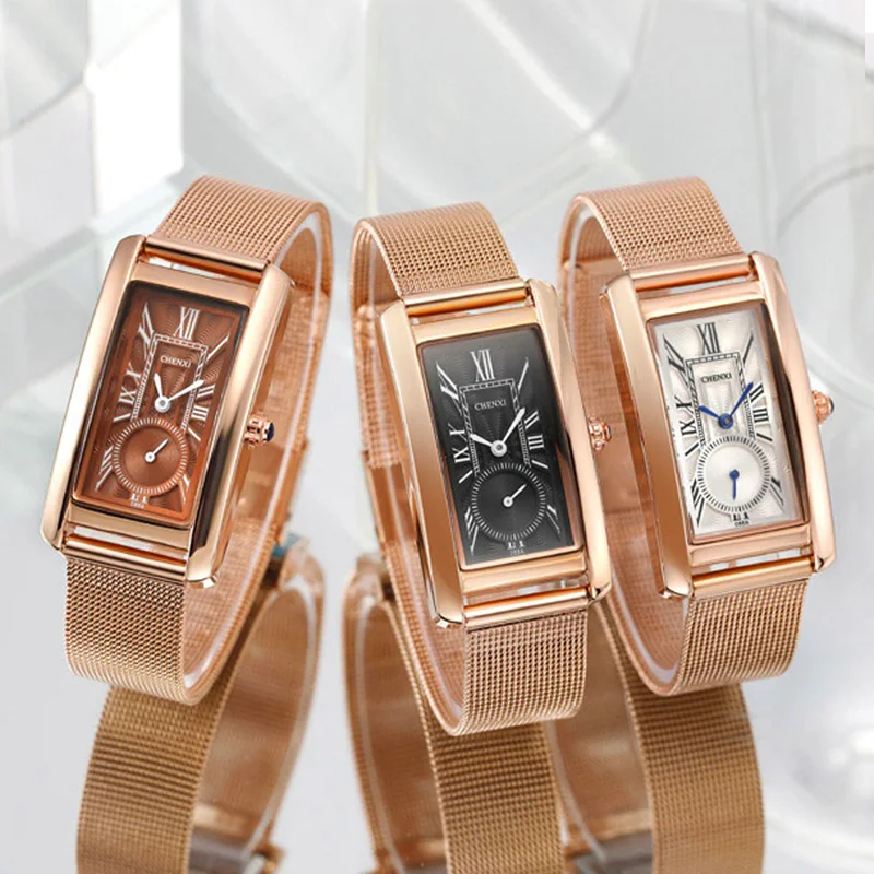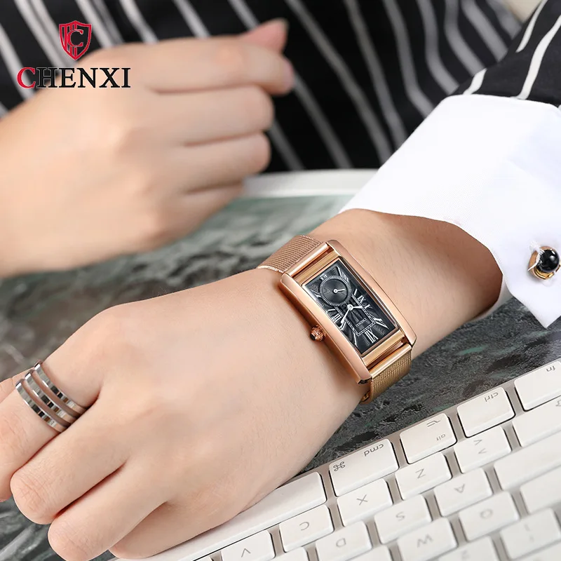 Часы CHENXI Женские повседневные, популярные уникальные прямоугольные, с римскими цифрами и синей стрелкой, водонепроницаемые элегантные