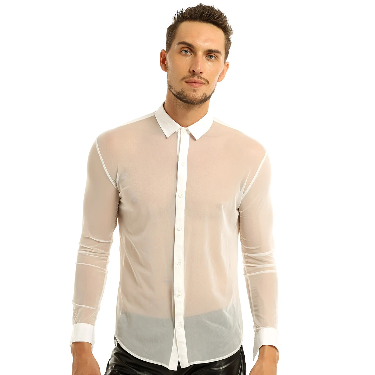 Сексуальная мужская прозрачная сетчатая Клубная одежда iEFiEL с длинным рукавом, топ, мужская рубашка, вечерняя одежда для вечеринки, мужские рубашки