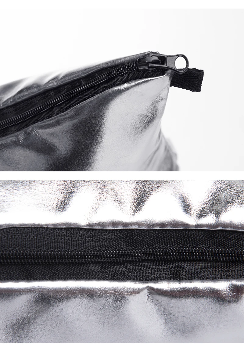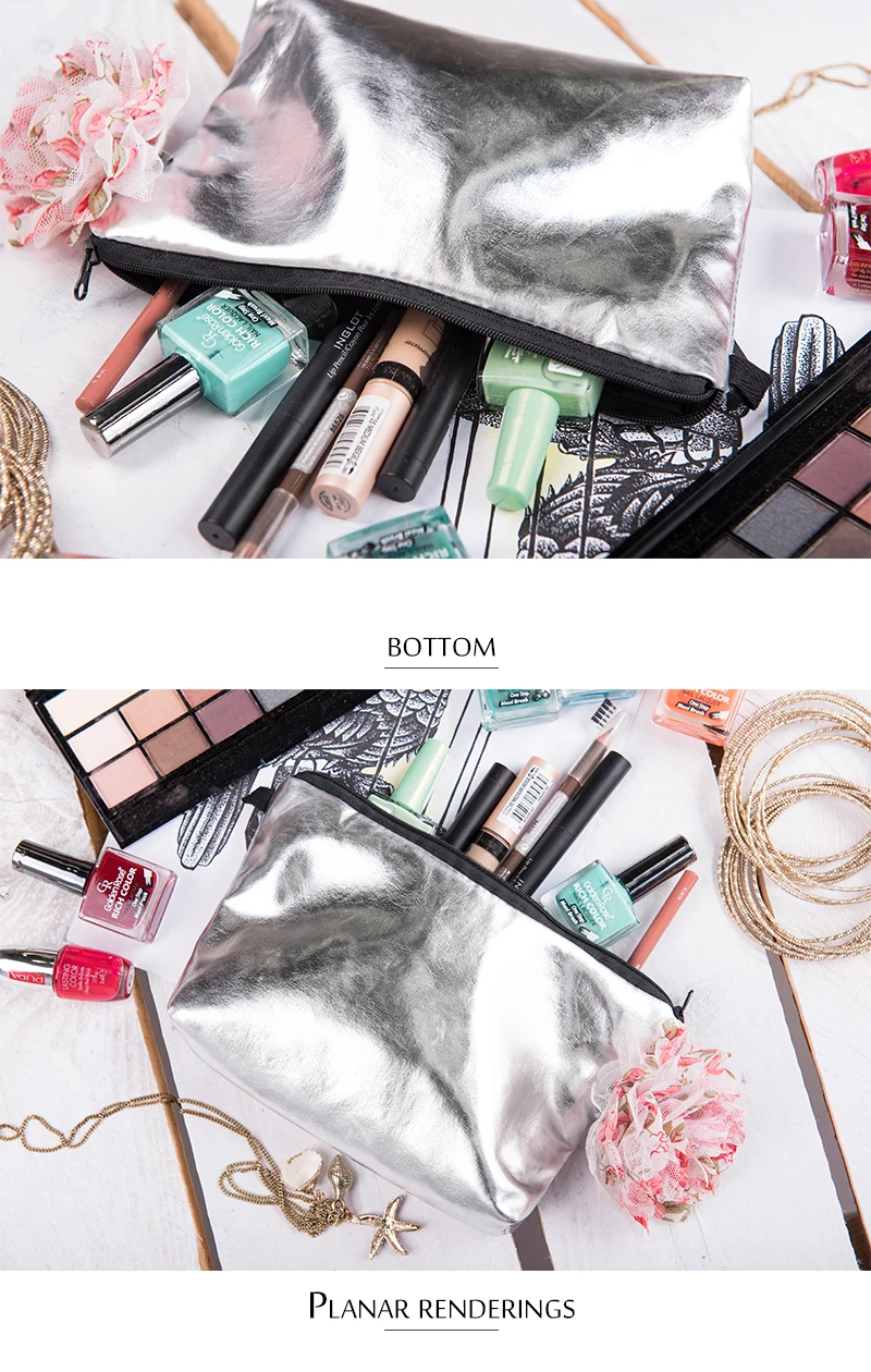 Женские дорожные сумки для макияжа из искусственной кожи, серебристые портативные косметички на молнии, органайзер для косметики