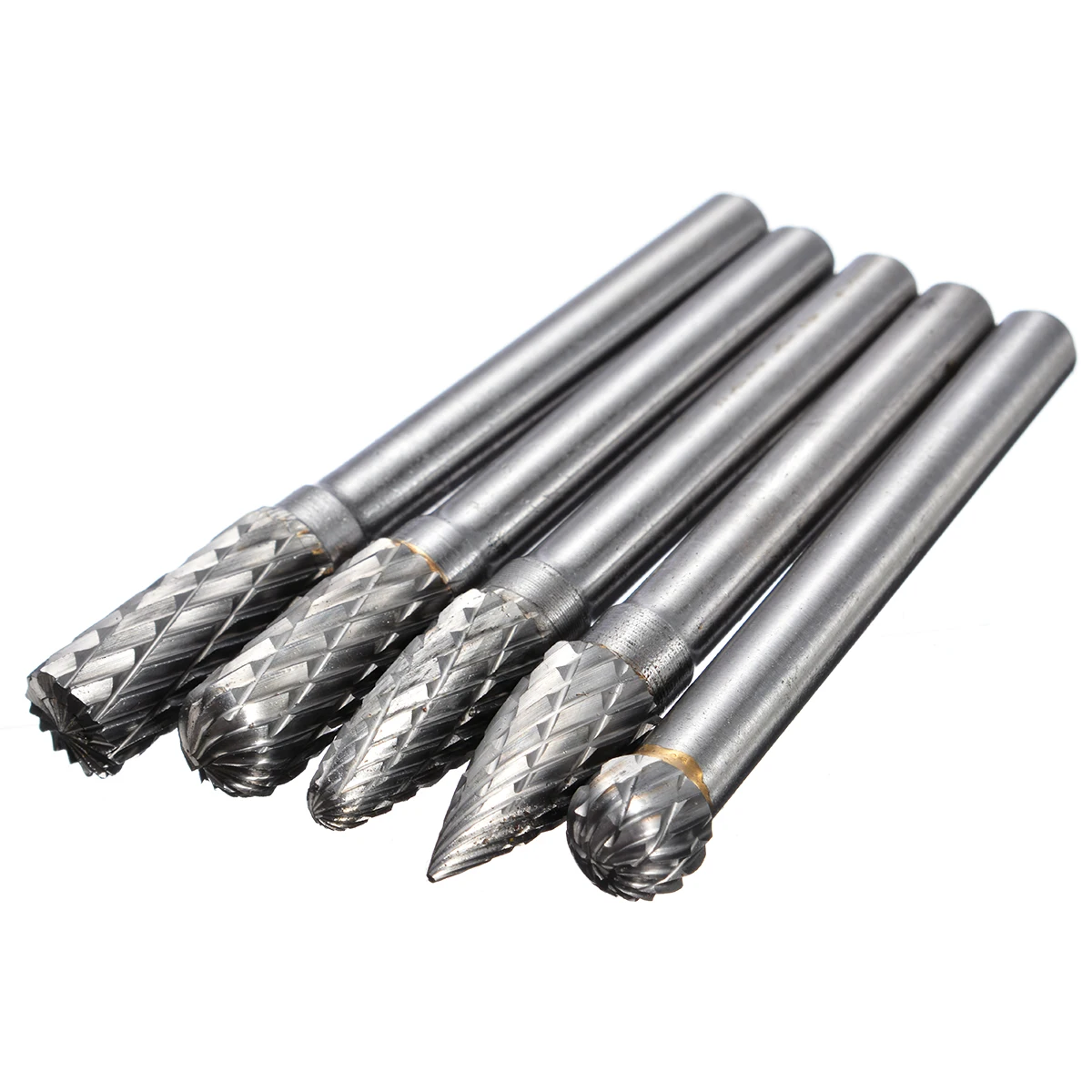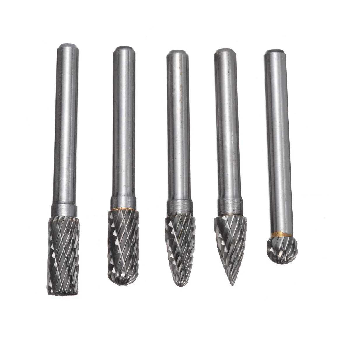 Набор точечных шлифовальных насадок из карбида вольфрама с хвостовиком 6 мм, длина 50-60 мм для электроинструментов, 5 шт.
