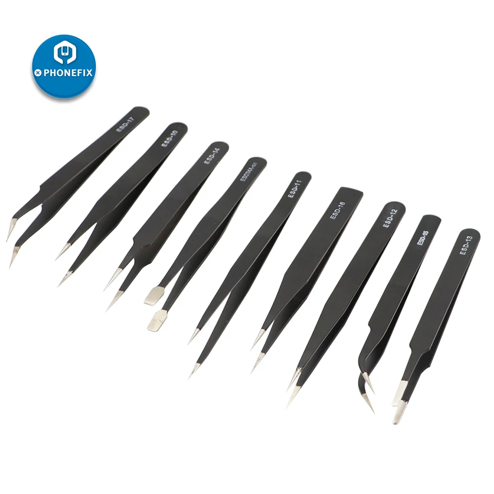 9 шт. ОУР Нержавеющаясталь пинцет с Сумка для переноски антистатические пинцеты для Мобильный телефон PCB BGA Инструменты для ремонта