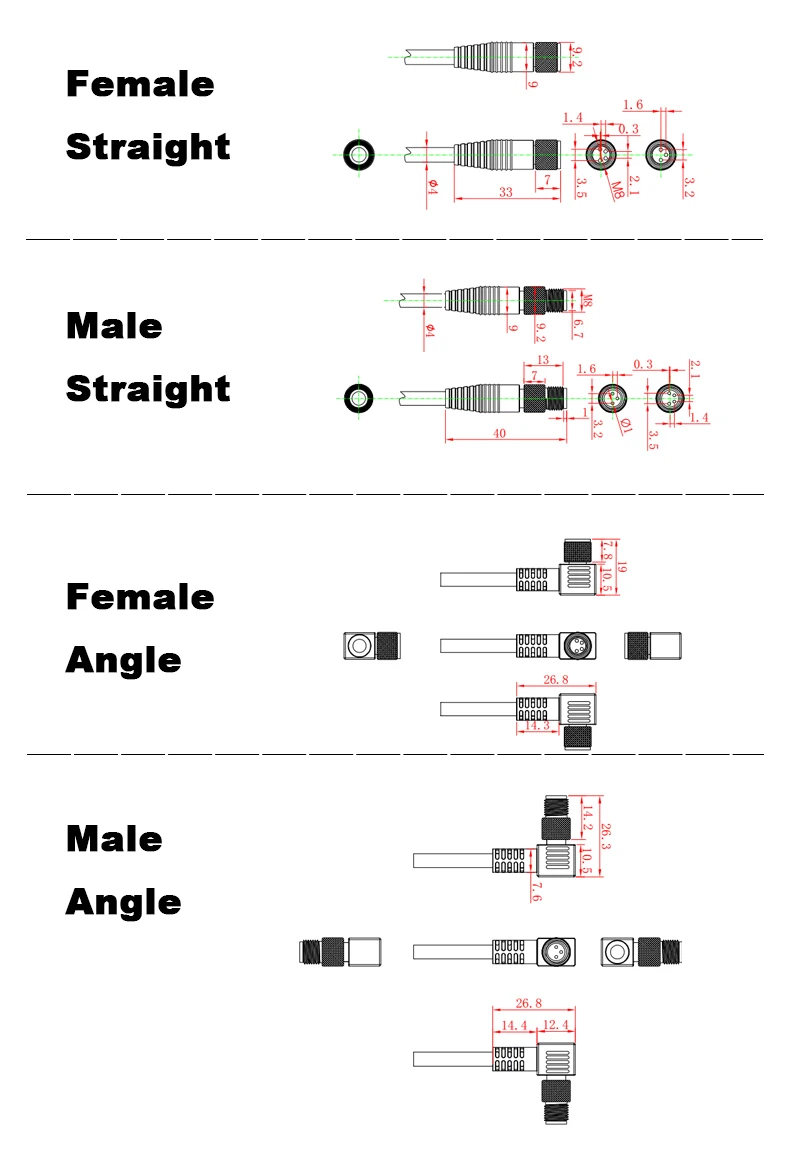 Кабель для подключения датчика M8 водонепроницаемый штекер и гнездо прямоугольный 4 5 Pin + 2m ПВХ линия