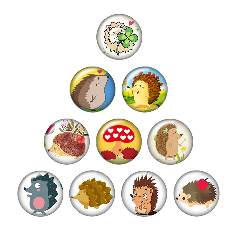 Божья коровка в виде единорога, ежика, лиса, пчела, божья коровка, 10 шт., Смешанные Круглые Стеклянные Кабошоны для фото 12 мм16 мм18 мм25 мм, демонстрационная фурнитура с плоским основанием