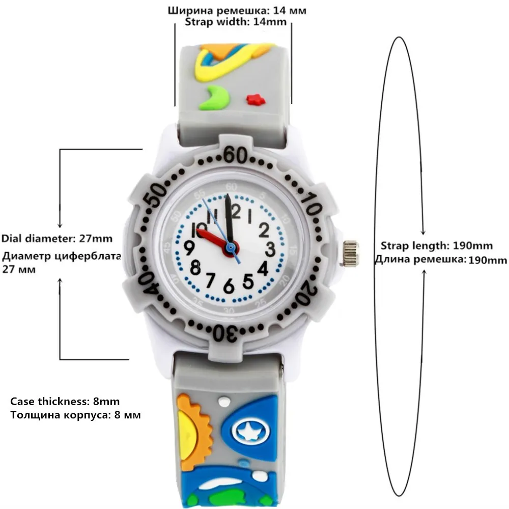 100% Оригинальные брендовые часы высокого качества Кварцевые часы с силиконовым ремешком Для присмотра за детьми, для детей Детские водонепроницаемые часы, подходят для всех случаев Лучший подарок для ребенка Особенности: Циферблат: плексиглас Чехол: Твердый чехол из нержавеющей стали Браслет часов: силиконовый ремешок Диаметр циферблата: около 27 мм Общая длина: около 190 мм Максимальный размер импульса: около 170 мм Минимальный размер импульса: прибл. 135 мм. Ширина ремня: около 14 мм Вес: около 36 г Водонепроницаемый: 30 м водонепроницаемый
