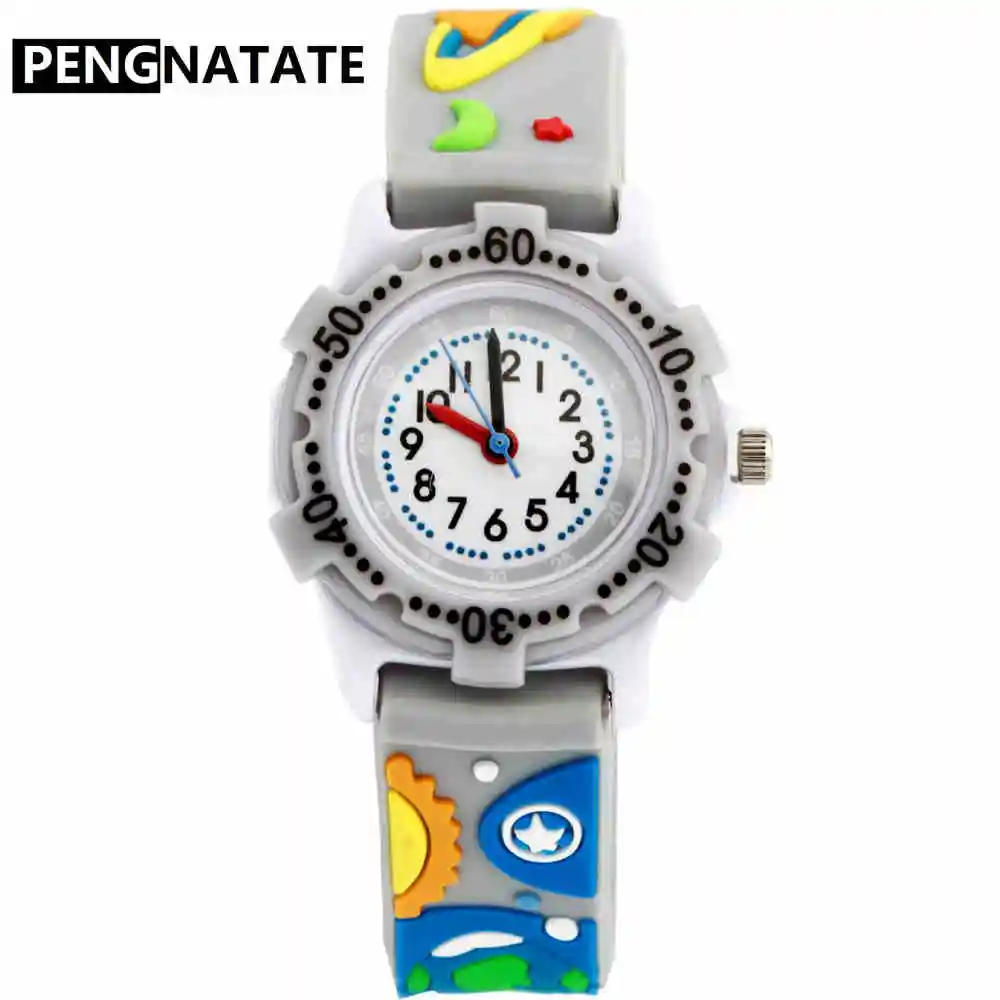 Детские Мультяшные часы PENGNATATE с 3D космическим ремешком, модные детские часы для мальчиков, силиконовый браслет, наручные часы, студенческие подарки