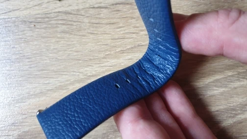 Поверил обзорщику на муське и взял этот ремешок по 12.47$. По ощущениям он очень лёгкий, практически картонный, хотя выглядит красиво.Фурнирута самая дешёвая, сидит не очень плотно. Кожа или нет понять сложно, но это однозначно очень тонкий наклеенный слой, внутри явно что-то бумажное. После суток ношения уже видно как она начинает морщиться.